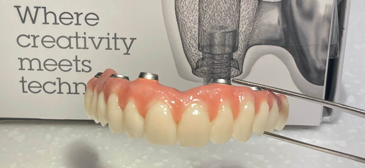 We replaced his dentition with osstem dental implants with an immediate load on the day. After a healing period of 14 weeks we then designed his smile. The substructure is a createch medical framework with teeth and pink composite to match his anatomy.